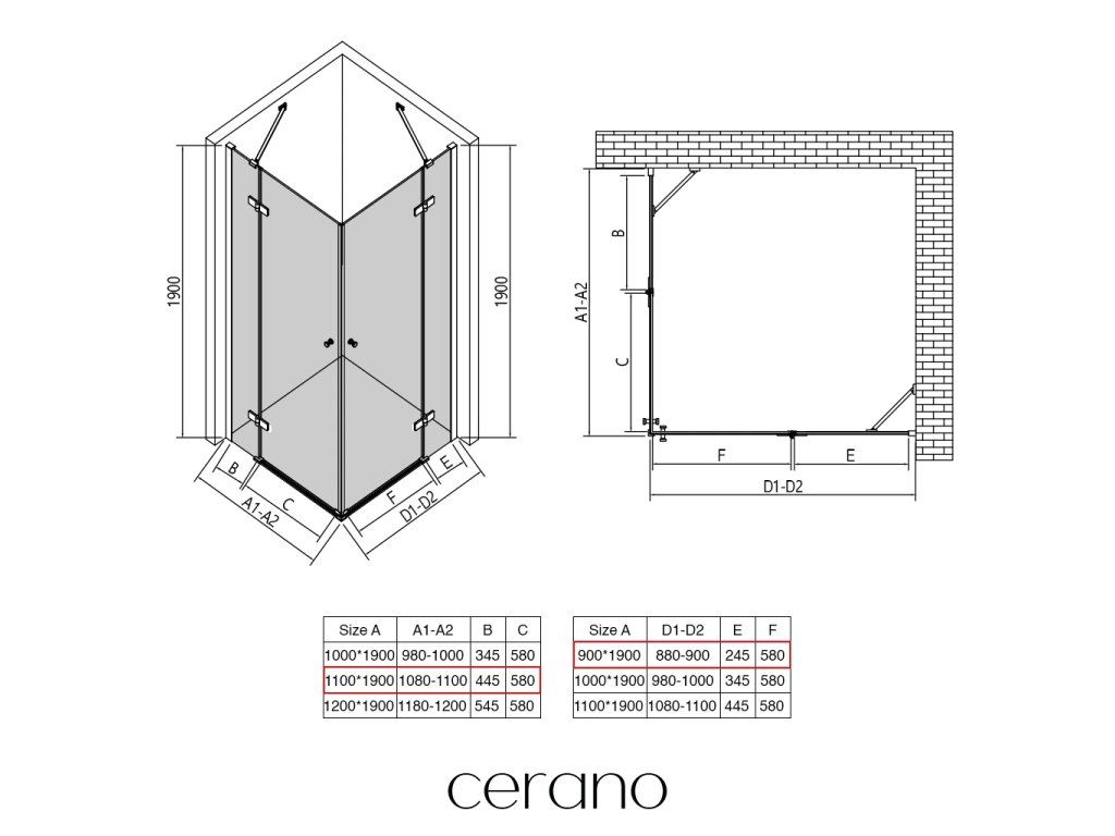 V rámci tejto série ponúkame širokú škálu rozmerov, aby sme uspokojili rôzne potreby našich zákazníkov. Všetky sprchové kúty, dvere a zásteny značky CERANO sú plne kompatibilné so sprchovými vaničkami CERANO v rovnakých rozmeroch, čo zaisťuje bezproblémovú inštaláciu a dokonalé zladenie. Sprchovací kút je možné navyše inštalovať flexibilne – buď na zodpovedajúcu sprchovú vaničku, alebo priamo na podlahu podľa vašich preferencií a možností kúpeľne.