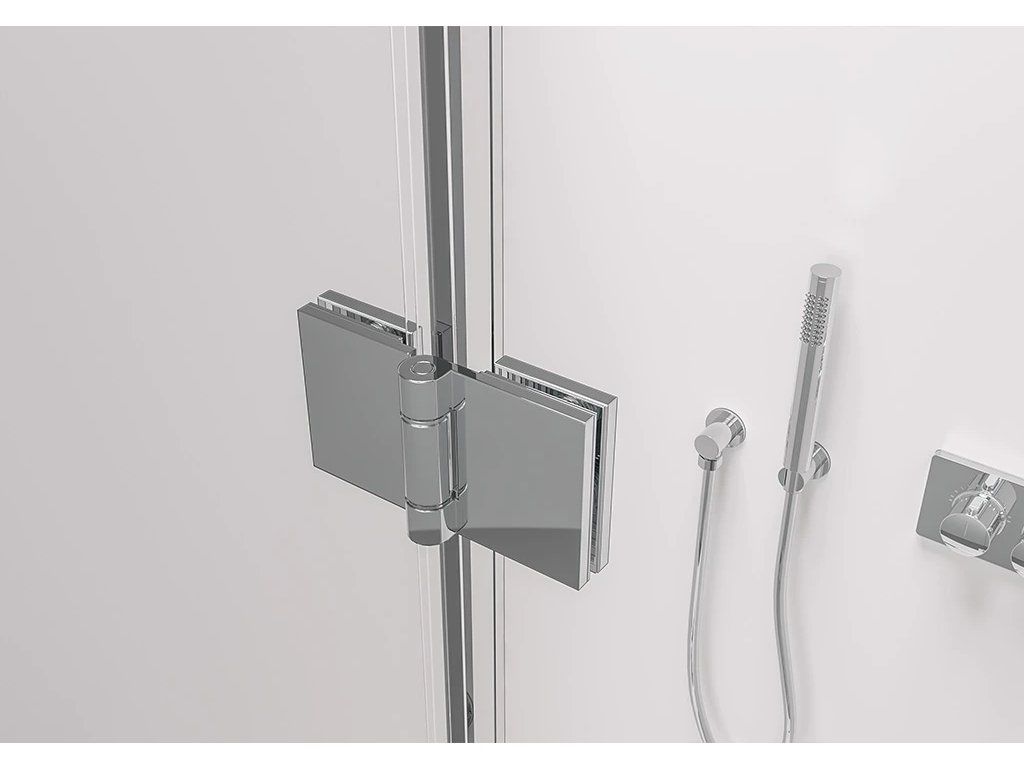 Dvere sprchového kúta sú osadené pánty a otvárajú sa iba smerom von. Tento spôsob otvárania vyžaduje určitý priestor na plné otvorenie dverí, čo treba zvážiť pri plánovaní.