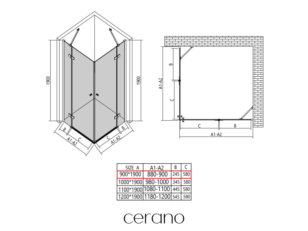V rámci tejto série ponúkame širokú škálu rozmerov, aby sme uspokojili rôzne potreby našich zákazníkov. Všetky sprchové kúty, dvere a zásteny značky CERANO sú plne kompatibilné so sprchovými vaničkami CERANO v rovnakých rozmeroch, čo zaisťuje bezproblémovú inštaláciu a dokonalé zladenie. Sprchovací kút je možné navyše inštalovať flexibilne – buď na zodpovedajúcu sprchovú vaničku, alebo priamo na podlahu podľa vašich preferencií a možností kúpeľne.