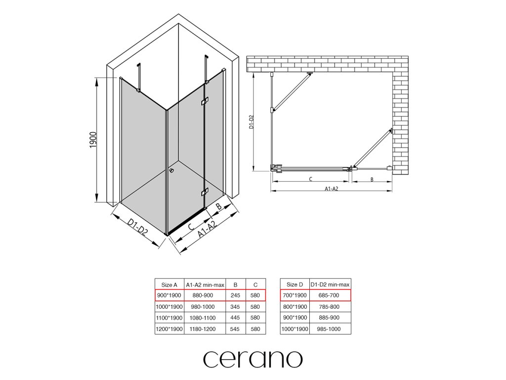 V rámci tejto série ponúkame širokú škálu rozmerov, aby sme uspokojili rôzne potreby našich zákazníkov. Všetky sprchové kúty, dvere a zásteny značky CERANO sú plne kompatibilné so sprchovými vaničkami CERANO v rovnakých rozmeroch, čo zaisťuje bezproblémovú inštaláciu a dokonalé zladenie. Sprchovací kút je možné navyše inštalovať flexibilne – buď na zodpovedajúcu sprchovú vaničku, alebo priamo na podlahu podľa vašich preferencií a možností kúpeľne.