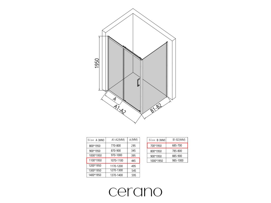 CERANO - Sprchovací kút Orlano Ľ/P - 5 mm - chróm, transparentné sklo - 110x70x195 cm - posuvný