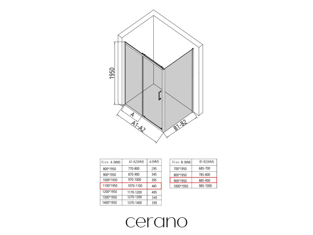 CERANO - Sprchovací kút Orlano L/P - 5 mm - chróm, transparentné sklo - 110x90x195 cm - posuvný