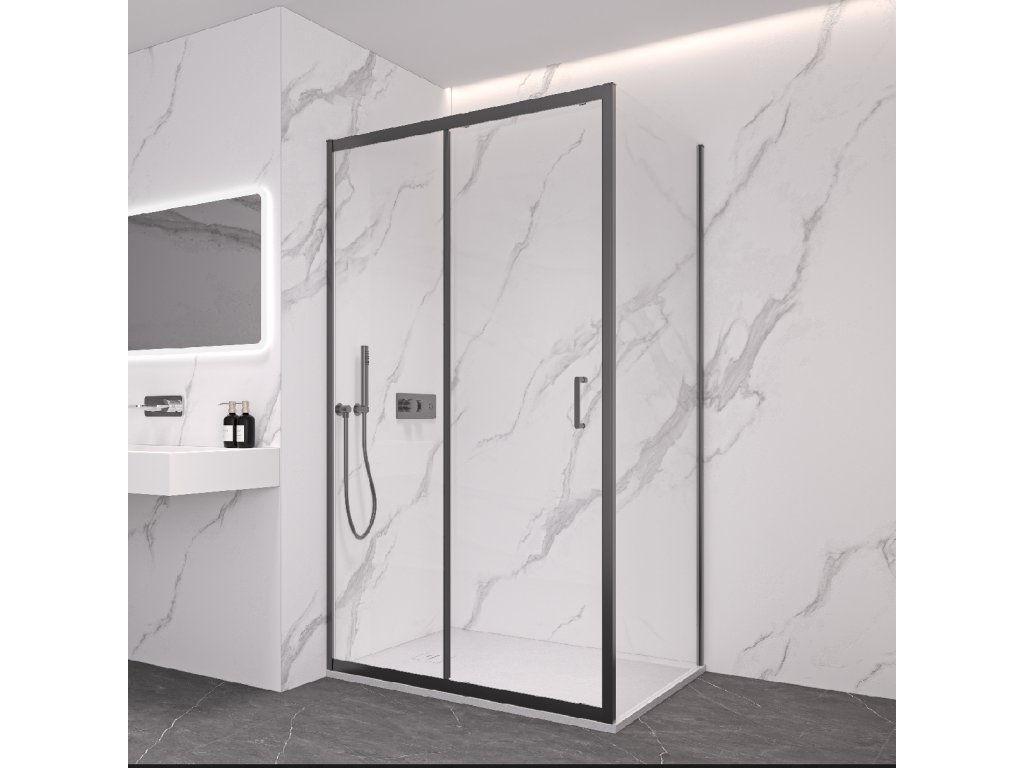 CERANO - Sprchovací kút Orlano Ľ/P - 5 mm - čierna matná, transparentné sklo - 130x100x195 cm - posuvný
