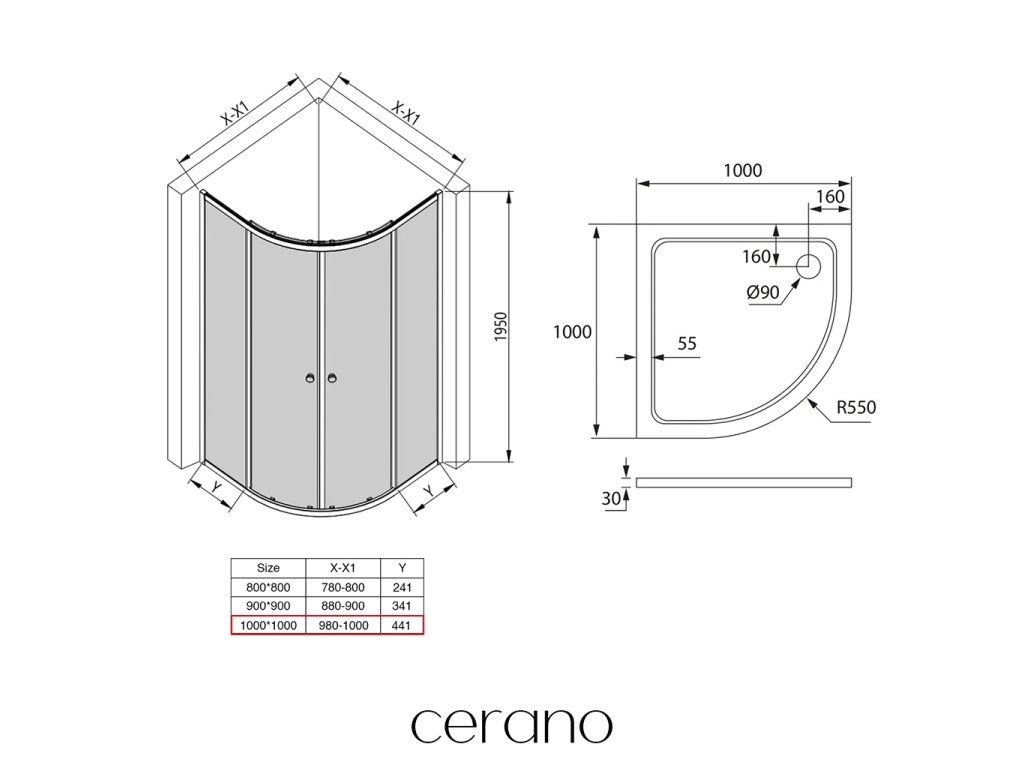 V rámci tejto série ponúkame tri osvedčené rozmery, ktoré zodpovedajú najčastejším požiadavkám na usporiadanie modernej kúpeľne. Tento rohový sprchovací kút je navrhnutý s dôrazom na dokonalé zladenie s polkruhovými sprchovými vaničkami CERANO rovnakého rozmeru, čo uľahčuje inštaláciu a vytvára jednotný, harmonický vzhľad. Vysoká kompatibilita zároveň eliminuje potrebu zložitých úprav alebo prispôsobení. Vďaka flexibilnej montáži ho môžete ľahko nainštalovať buď na zodpovedajúcu sprchovú vaničku, alebo priamo na pripravenú podlahu s odtokovým systémom - podľa vašich stavebných možností a estetických preferencií.