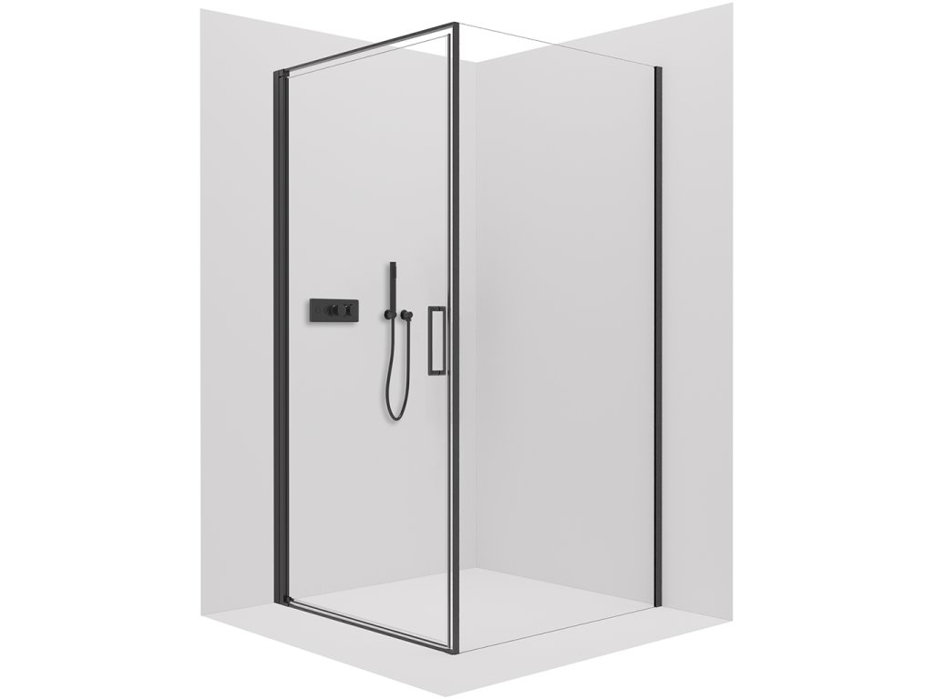 CERANO - Sprchovací kút Porte Ľ/P - 8 mm - čierna matná, transparentné sklo - 90x80x195 cm - otočný