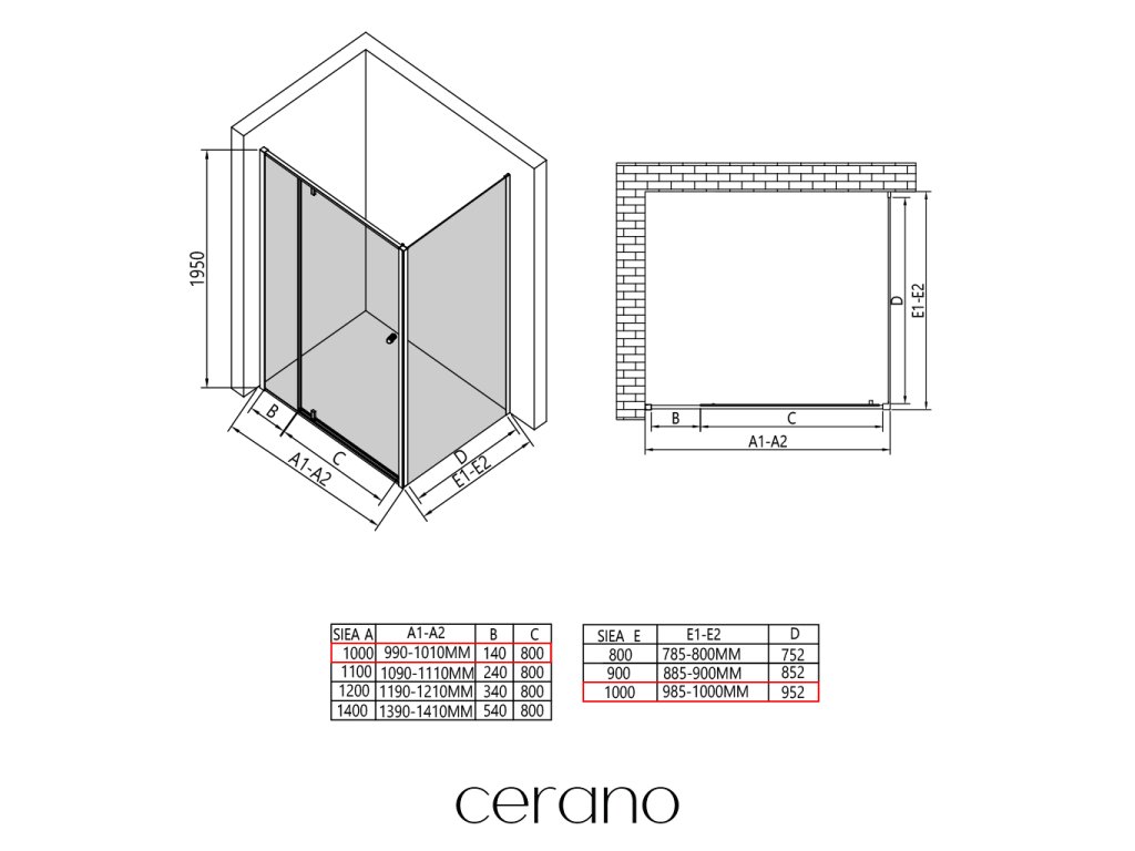 V rámci tejto série ponúkame širokú škálu rozmerov, aby sme uspokojili rôzne potreby našich zákazníkov. Všetky sprchové kúty, dvere a zásteny značky CERANO sú plne kompatibilné so sprchovými vaničkami CERANO v rovnakých rozmeroch, čo zaisťuje bezproblémovú inštaláciu a dokonalé zladenie. Sprchovací kút je možné navyše inštalovať flexibilne – buď na zodpovedajúcu sprchovú vaničku, alebo priamo na podlahu podľa vašich preferencií a možností kúpeľne.