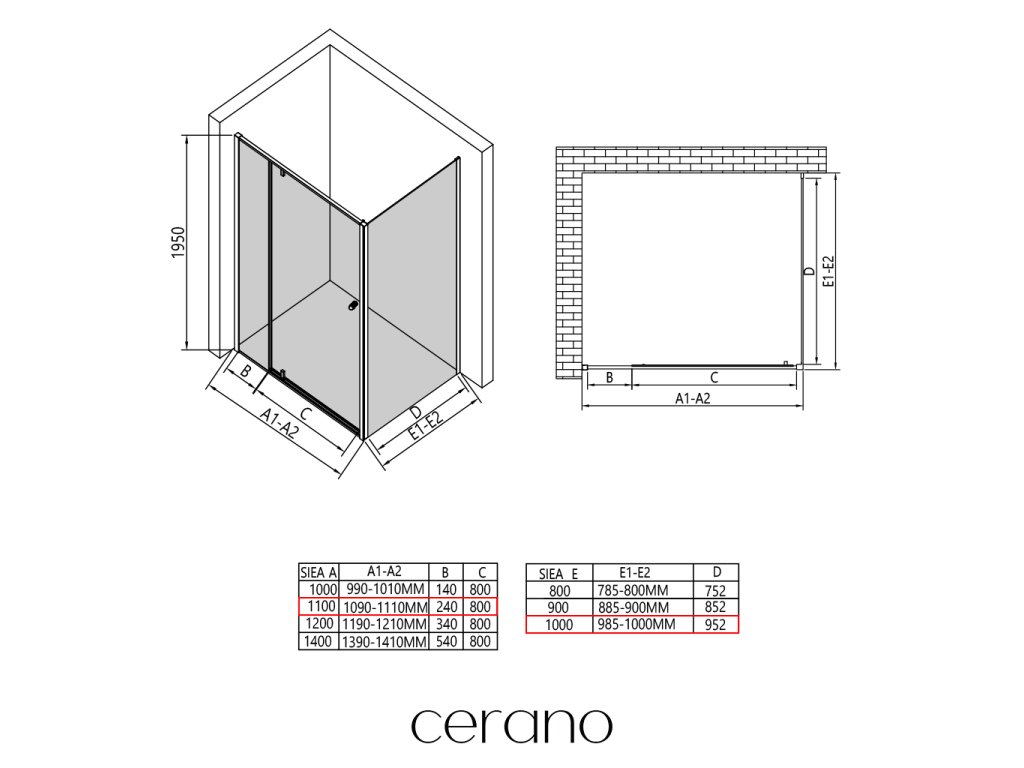 V rámci tejto série ponúkame širokú škálu rozmerov, aby sme uspokojili rôzne potreby našich zákazníkov. Všetky sprchové kúty, dvere a zásteny značky CERANO sú plne kompatibilné so sprchovými vaničkami CERANO v rovnakých rozmeroch, čo zaisťuje bezproblémovú inštaláciu a dokonalé zladenie. Sprchovací kút je možné navyše inštalovať flexibilne – buď na zodpovedajúcu sprchovú vaničku, alebo priamo na podlahu podľa vašich preferencií a možností kúpeľne.