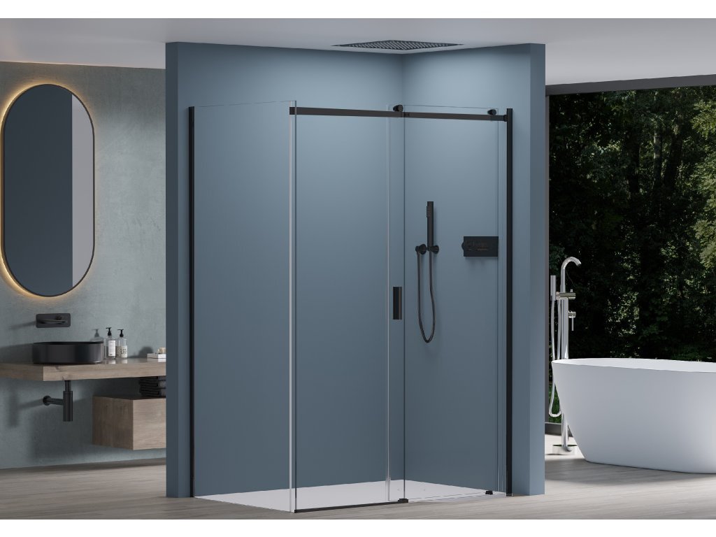 CERANO - Sprchovací kút Santoro Ľ/P - 6 mm - čierna matná, transparentné sklo - 120x80x195 cm - posuvný