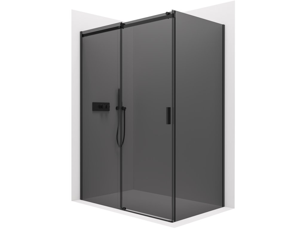 CERANO - Sprchovací kút Santoro Ľ/P - 8 mm - čierna matná, grafitové sklo - 150x90x195 cm - posuvný