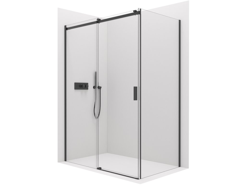 CERANO - Sprchovací kút Santoro Ľ/P - 8 mm - čierna matná, transparentné sklo - 150x70x195 cm - posuvný