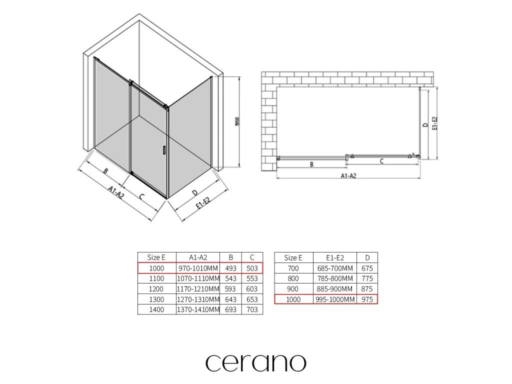 V rámci tejto série ponúkame širokú škálu rozmerov, aby sme uspokojili rôzne potreby našich zákazníkov. Všetky sprchové kúty, dvere a zásteny značky CERANO sú plne kompatibilné so sprchovými vaničkami CERANO v rovnakých rozmeroch, čo zaisťuje bezproblémovú inštaláciu a dokonalé zladenie. Sprchovací kút je možné navyše inštalovať flexibilne – buď na zodpovedajúcu sprchovú vaničku, alebo priamo na podlahu podľa vašich preferencií a možností kúpeľne.