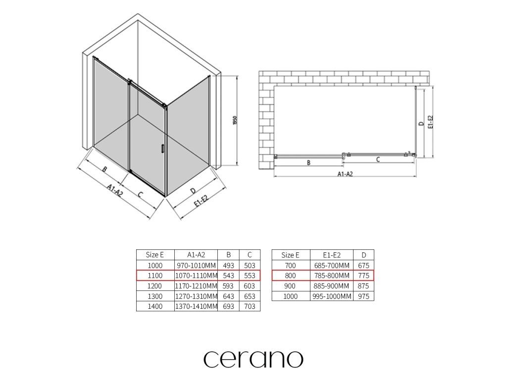 V rámci tejto série ponúkame širokú škálu rozmerov, aby sme uspokojili rôzne potreby našich zákazníkov. Všetky sprchové kúty, dvere a zásteny značky CERANO sú plne kompatibilné so sprchovými vaničkami CERANO v rovnakých rozmeroch, čo zaisťuje bezproblémovú inštaláciu a dokonalé zladenie. Sprchovací kút je možné navyše inštalovať flexibilne – buď na zodpovedajúcu sprchovú vaničku, alebo priamo na podlahu podľa vašich preferencií a možností kúpeľne.