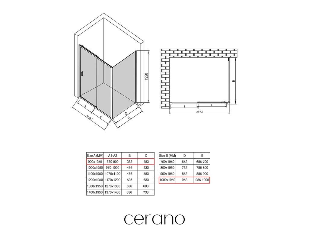 V rámci tejto série ponúkame širokú škálu rozmerov, aby sme uspokojili rôzne potreby našich zákazníkov. Všetky sprchové kúty, dvere a zásteny značky CERANO sú plne kompatibilné so sprchovými vaničkami CERANO v rovnakých rozmeroch, čo zaisťuje bezproblémovú inštaláciu a dokonalé zladenie. Sprchovací kút je možné navyše inštalovať flexibilne – buď na zodpovedajúcu sprchovú vaničku, alebo priamo na podlahu podľa vašich preferencií a možností kúpeľne.