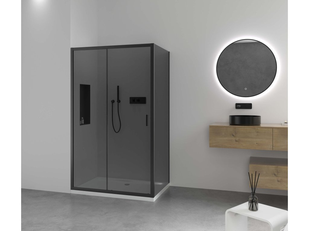 CERANO - Sprchovací kút Varone LINE Ľ/P - 6 mm - čierna matná, grafitové sklo - 110x90x195 cm - posuvný