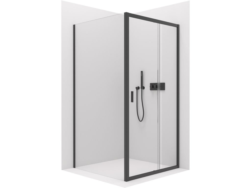 CERANO - Sprchovací kút Varone LINE Ľ/P - 6 mm - čierna matná, transparentné sklo - 140x80x195 cm - posuvný