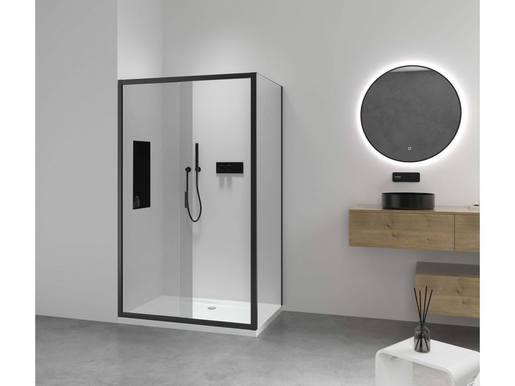 CERANO - Sprchovací kút Varone LINE Ľ/P - 6 mm - čierna matná, transparentné sklo - 90x100x195 cm - posuvný