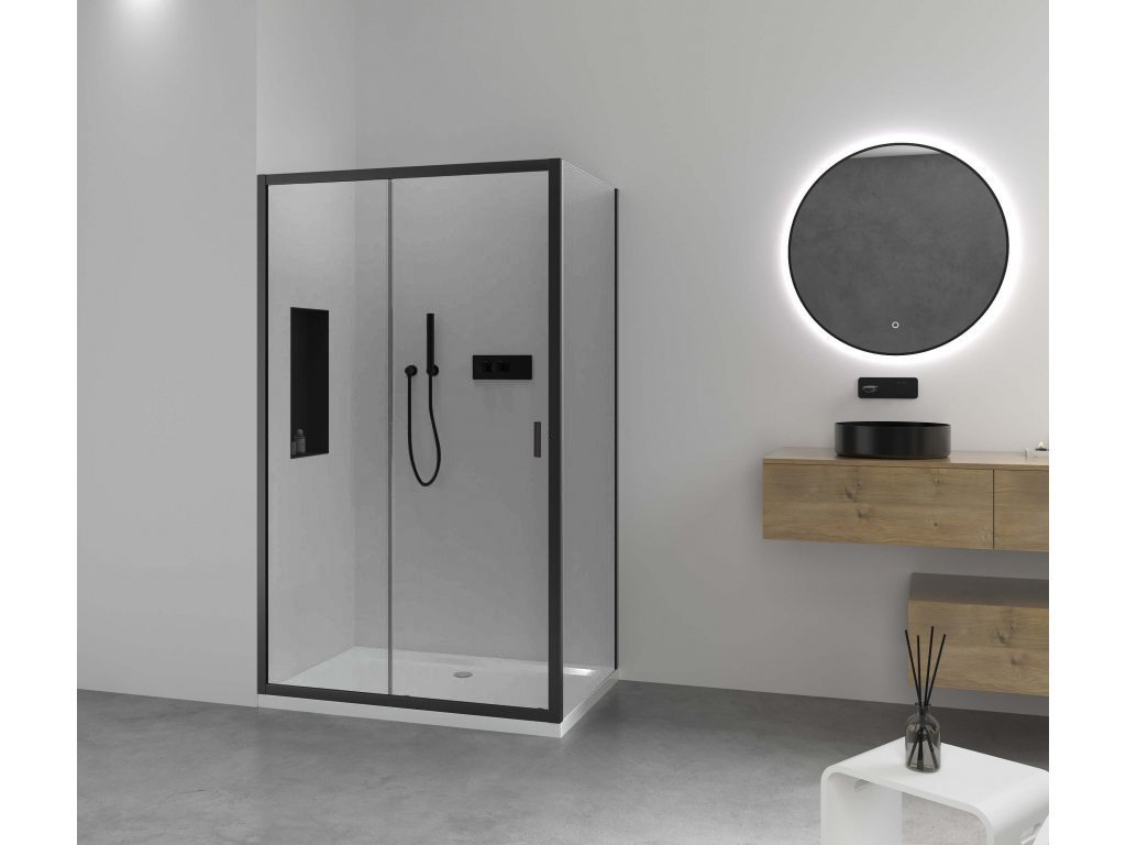 CERANO - Sprchovací kút Varone LINE Ľ/P - 6 mm - čierna matná, transparentné sklo - 90x90x195 cm - posuvný