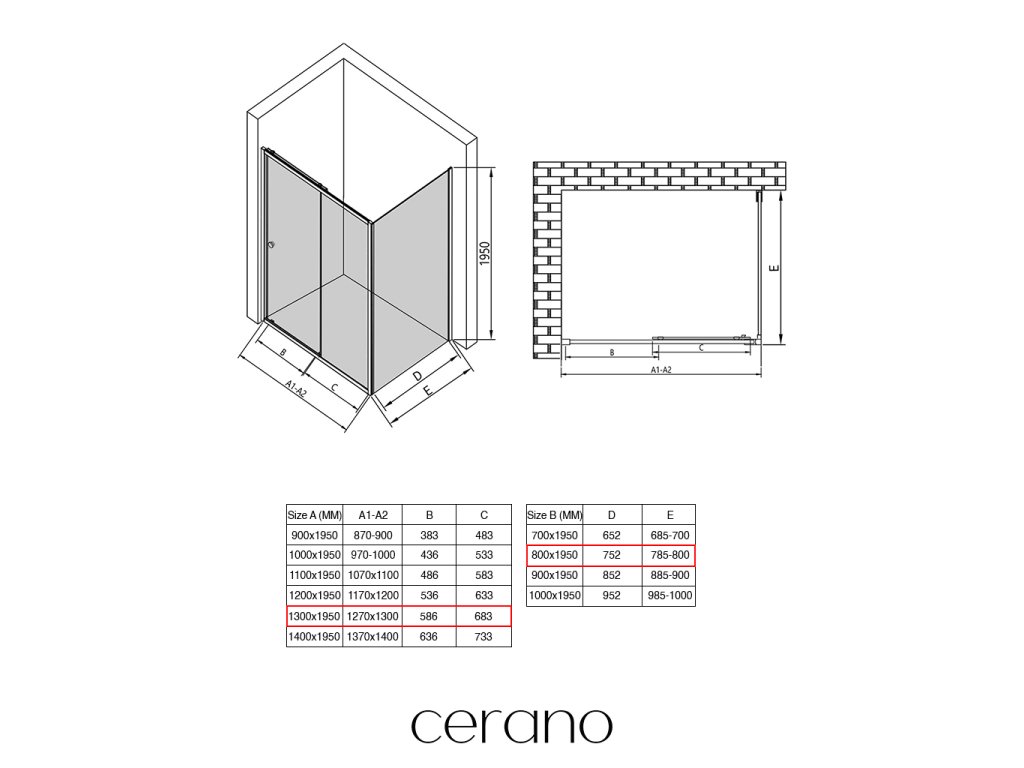 V rámci tejto série ponúkame širokú škálu rozmerov, aby sme uspokojili rôzne potreby našich zákazníkov. Všetky sprchové kúty, dvere a zásteny značky CERANO sú plne kompatibilné so sprchovými vaničkami CERANO v rovnakých rozmeroch, čo zaisťuje bezproblémovú inštaláciu a dokonalé zladenie. Sprchovací kút je možné navyše inštalovať flexibilne – buď na zodpovedajúcu sprchovú vaničku, alebo priamo na podlahu podľa vašich preferencií a možností kúpeľne.