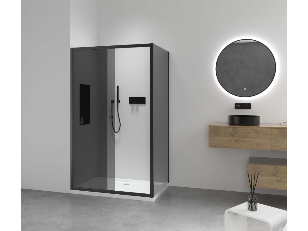CERANO - Sprchovací kút Varone POINT Ľ/P - 6 mm - čierna matná, grafitové sklo - 130x100x195 cm - posuvný