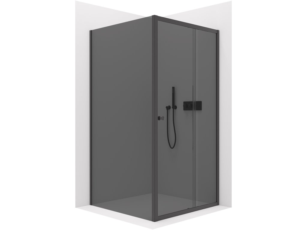 CERANO - Sprchovací kút Varone POINT Ľ/P - 6 mm - čierna matná, grafitové sklo - 130x80x195 cm - posuvný