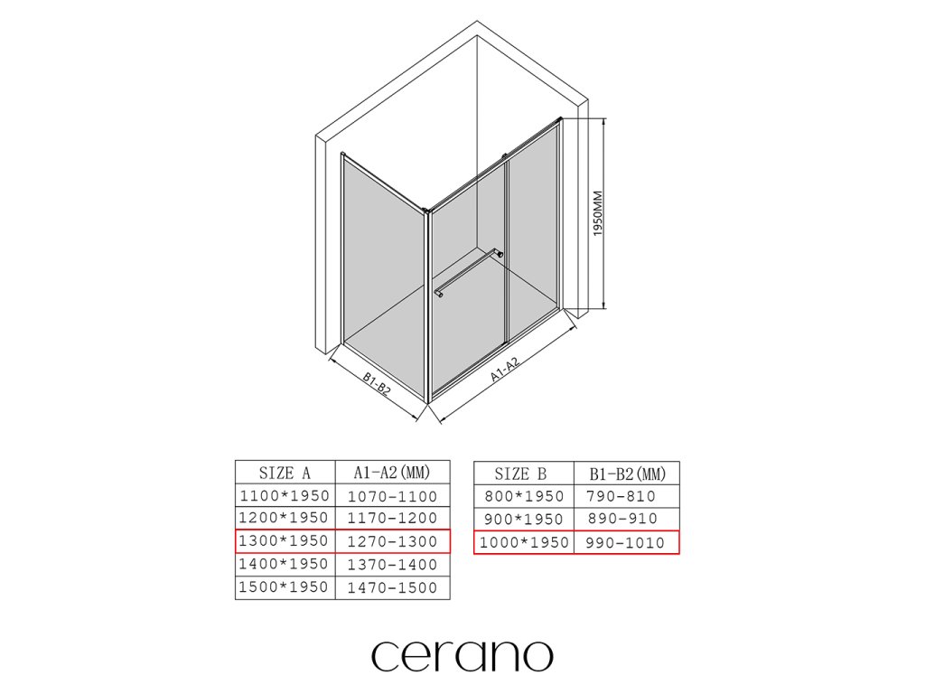 V rámci tejto série ponúkame širokú škálu rozmerov, aby sme uspokojili rôzne potreby našich zákazníkov. Všetky sprchové kúty, dvere a zásteny značky CERANO sú plne kompatibilné so sprchovými vaničkami CERANO v rovnakých rozmeroch, čo zaisťuje bezproblémovú inštaláciu a dokonalé zladenie. Sprchovací kút je možné navyše inštalovať flexibilne – buď na zodpovedajúcu sprchovú vaničku, alebo priamo na podlahu podľa vašich preferencií a možností kúpeľne.