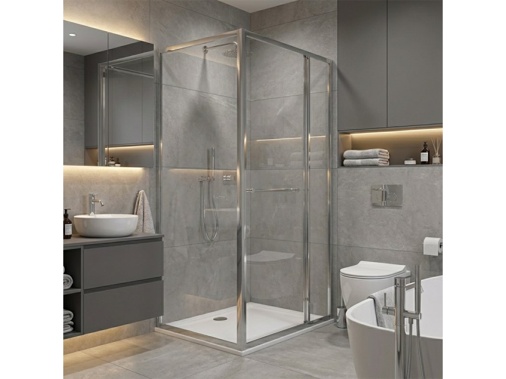 Zasúvacie dvere sa inovatívnym spôsobom zasúvajú dovnútra sprchového kúta, čím vzniká veľký vstupný priestor. Vďaka tomu dvere nezasahujú do priestoru kúpeľne. Ide o veľmi vhodné riešenie aj pre malé kúpeľne.