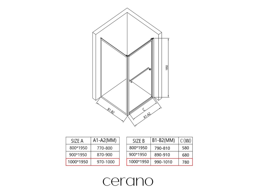 V rámci tejto série ponúkame širokú škálu rozmerov, aby sme uspokojili rôzne potreby našich zákazníkov. Všetky sprchové kúty, dvere a zásteny značky CERANO sú plne kompatibilné so sprchovými vaničkami CERANO v rovnakých rozmeroch, čo zaisťuje bezproblémovú inštaláciu a dokonalé zladenie. Sprchovací kút je možné navyše inštalovať flexibilne – buď na zodpovedajúcu sprchovú vaničku, alebo priamo na podlahu podľa vašich preferencií a možností kúpeľne.