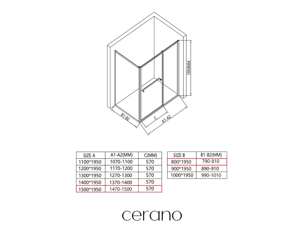 V rámci tejto série ponúkame širokú škálu rozmerov, aby sme uspokojili rôzne potreby našich zákazníkov. Všetky sprchové kúty, dvere a zásteny značky CERANO sú plne kompatibilné so sprchovými vaničkami CERANO v rovnakých rozmeroch, čo zaisťuje bezproblémovú inštaláciu a dokonalé zladenie. Sprchovací kút je možné navyše inštalovať flexibilne – buď na zodpovedajúcu sprchovú vaničku, alebo priamo na podlahu podľa vašich preferencií a možností kúpeľne.