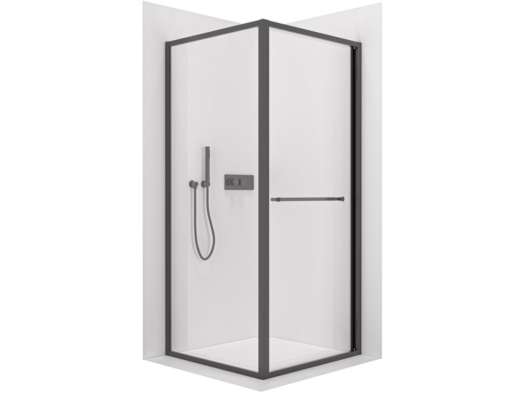 CERANO - Sprchovací kút Versaro L/P - 6 mm - čierna matná, transparentné sklo - 80x80 cm - zasúvacia