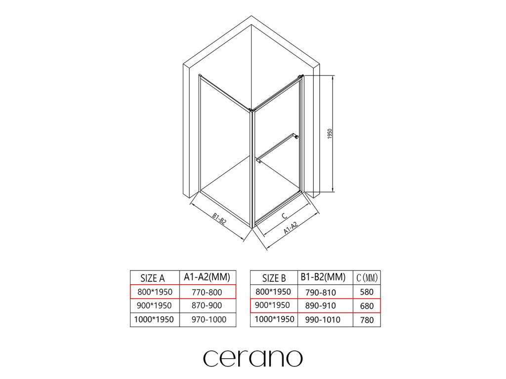 V rámci tejto série ponúkame širokú škálu rozmerov, aby sme uspokojili rôzne potreby našich zákazníkov. Všetky sprchové kúty, dvere a zásteny značky CERANO sú plne kompatibilné so sprchovými vaničkami CERANO v rovnakých rozmeroch, čo zaisťuje bezproblémovú inštaláciu a dokonalé zladenie. Sprchovací kút je možné navyše inštalovať flexibilne – buď na zodpovedajúcu sprchovú vaničku, alebo priamo na podlahu podľa vašich preferencií a možností kúpeľne.