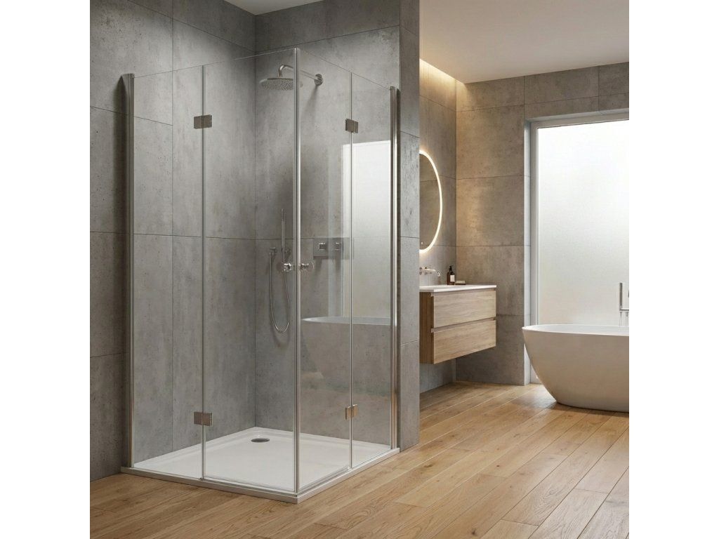 Sprchovací kút je vybavený rukoväťami vyrobenými z odolnej zliatiny zinku, ktoré sú ergonomicky tvarované pre jednoduchú manipuláciu pri otváraní a zatváraní. Odolný pántový systém zaisťuje stabilitu dverí a dlhodobú funkčnosť skladacieho mechanizmu.