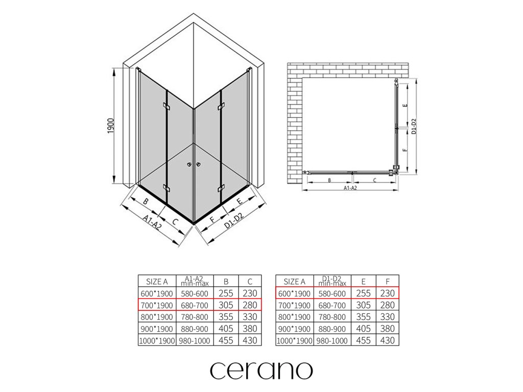 V rámci tejto série ponúkame širokú škálu rozmerov, aby sme uspokojili rôzne potreby našich zákazníkov. Všetky sprchové kúty, dvere a zásteny značky Cerano sú plne kompatibilné so sprchovými vaničkami Cerano v rovnakých rozmeroch, čo zaisťuje bezproblémovú inštaláciu a dokonalé zladenie. Sprchovací kút je možné navyše inštalovať flexibilne – buď na zodpovedajúcu sprchovú vaničku, alebo priamo na podlahu podľa vašich preferencií a možností kúpeľne.