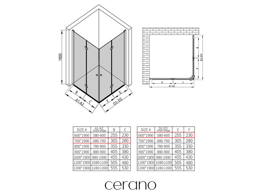 V rámci tejto série ponúkame širokú škálu rozmerov, aby sme uspokojili rôzne potreby našich zákazníkov. Všetky sprchové kúty, dvere a zásteny značky Cerano sú plne kompatibilné so sprchovými vaničkami Cerano v rovnakých rozmeroch, čo zaisťuje bezproblémovú inštaláciu a dokonalé zladenie. Sprchovací kút je možné navyše inštalovať flexibilne – buď na zodpovedajúcu sprchovú vaničku, alebo priamo na podlahu podľa vašich preferencií a možností kúpeľne.