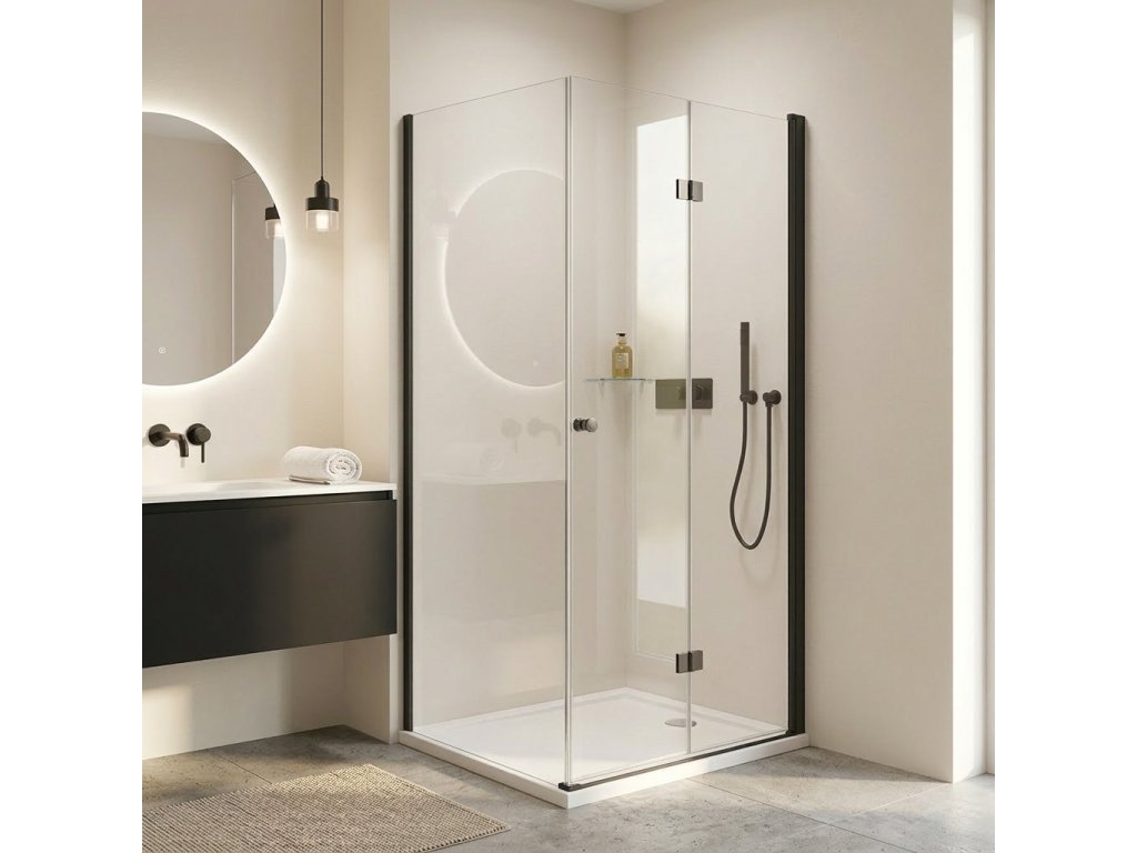 Dvere využívajú skladací (zalamovací) systém otvárania, ktorý je ideálny pre menšie kúpeľne s obmedzeným priestorom pred sprchovacím kútom. Dvere sú zavesené na zapustených pántoch so systémom pneumatického prizdvihnutia.