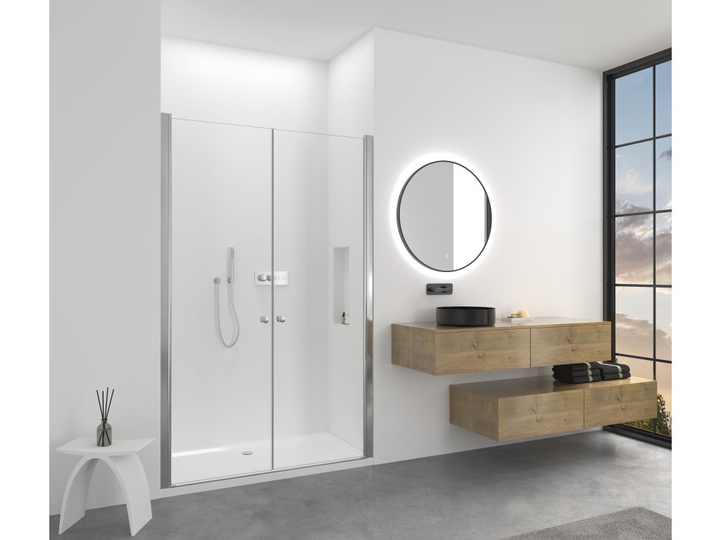 Dvere je možné otvárať dovnútra aj von, čo poskytuje maximálnu flexibilitu pri vstupe a pomáha minimalizovať únik vody.
