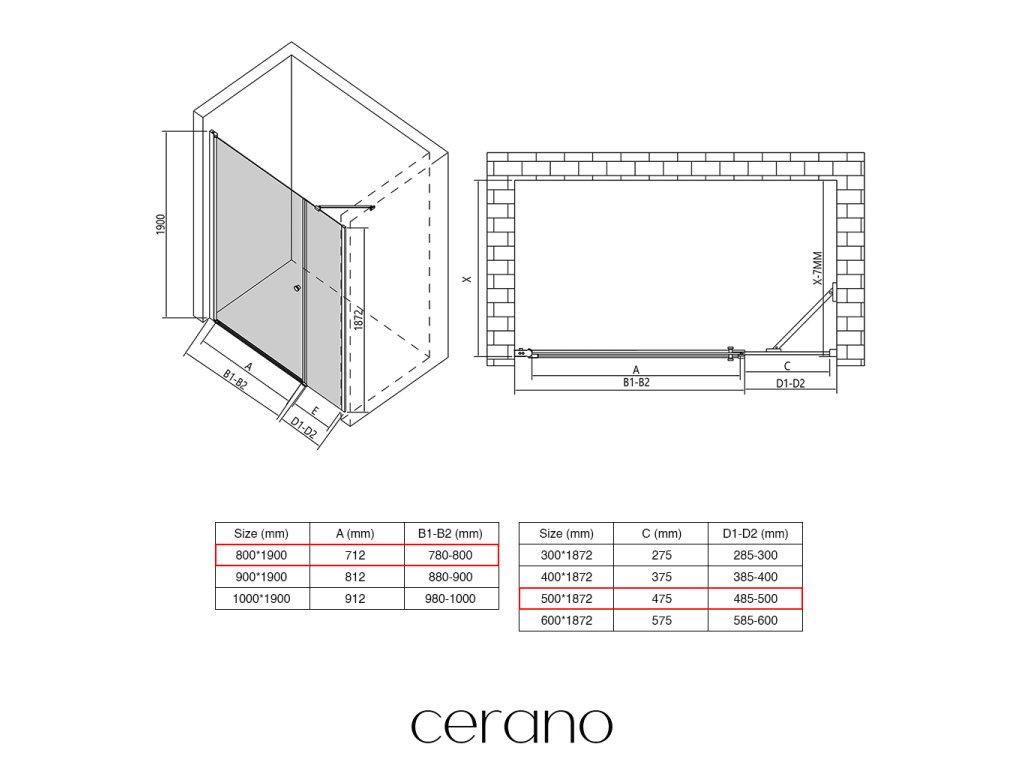 V rámci tejto série ponúkame širokú škálu rozmerov, aby sme uspokojili rôzne potreby našich zákazníkov. Všetky sprchové kúty, dvere a zásteny značky CERANO sú plne kompatibilné so sprchovými vaničkami CERANO v rovnakých rozmeroch, čo zaisťuje bezproblémovú inštaláciu a dokonalé zladenie.