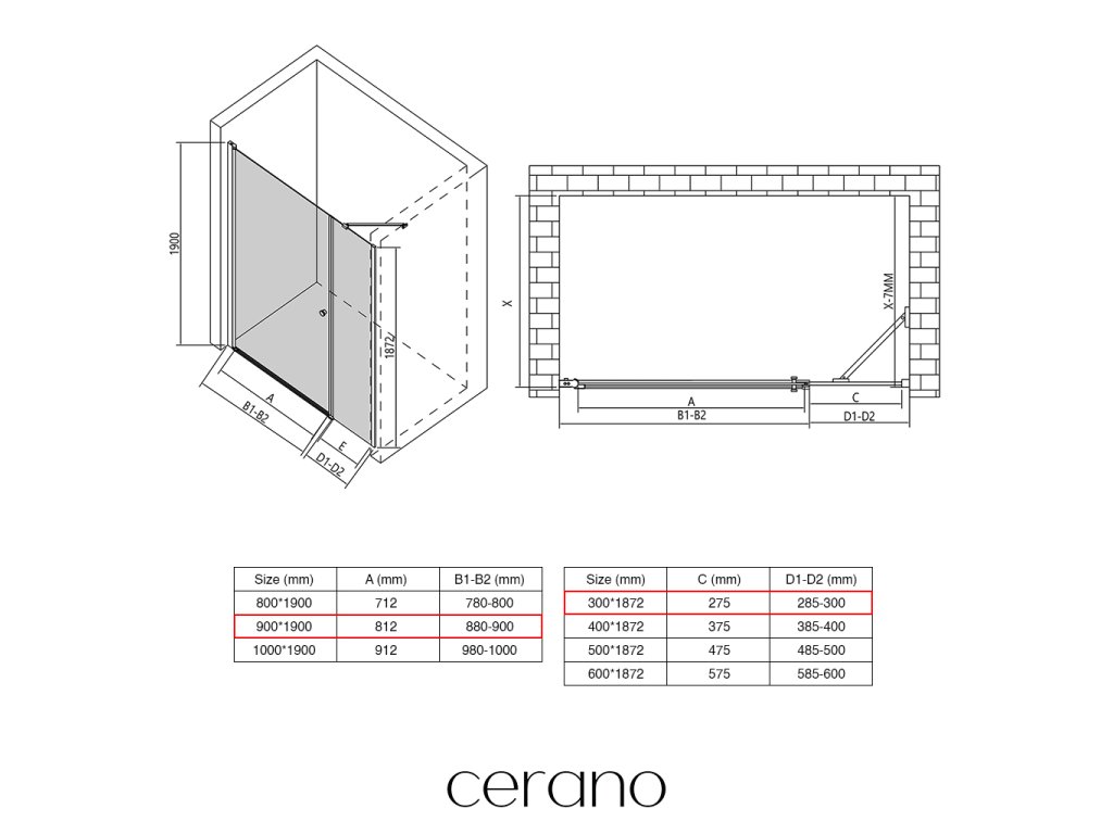 V rámci tejto série ponúkame širokú škálu rozmerov, aby sme uspokojili rôzne potreby našich zákazníkov. Všetky sprchové kúty, dvere a zásteny značky CERANO sú plne kompatibilné so sprchovými vaničkami CERANO v rovnakých rozmeroch, čo zaisťuje bezproblémovú inštaláciu a dokonalé zladenie.
