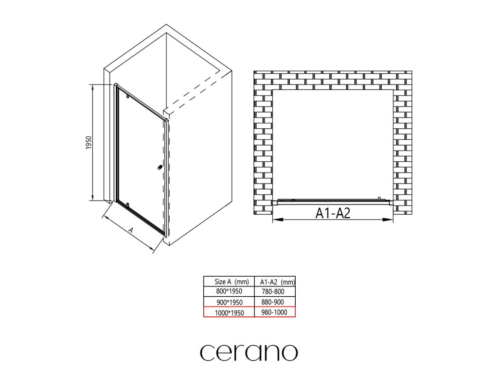 V rámci tejto série ponúkame širokú škálu rozmerov, aby sme uspokojili rôzne potreby našich zákazníkov. Všetky sprchové kúty, dvere a zásteny značky CERANO sú plne kompatibilné so sprchovými vaničkami CERANO v rovnakých rozmeroch, čo zaisťuje bezproblémovú inštaláciu a dokonalé zladenie. Sprchovací kút je možné navyše inštalovať flexibilne – buď na zodpovedajúcu sprchovú vaničku, alebo priamo na podlahu podľa vašich preferencií a možností kúpeľne.