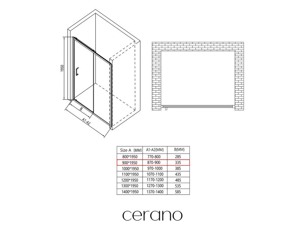 CERANO - Sprchové posuvné dvere Orlano L/P - 5 mm - čierna matná, transparentné sklo - 90x195 cm