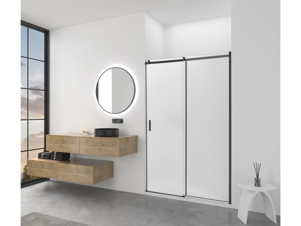 CERANO - Sprchové posuvné dvere Santoro - pravá - 6 mm - čierna matná, mliečne sklo - 140x195 cm