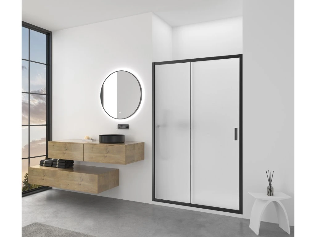 CERANO - Sprchové posuvné dvere Varone LINE Ľ/P - 6 mm - čierna matná, mliečne sklo - 130x195 cm