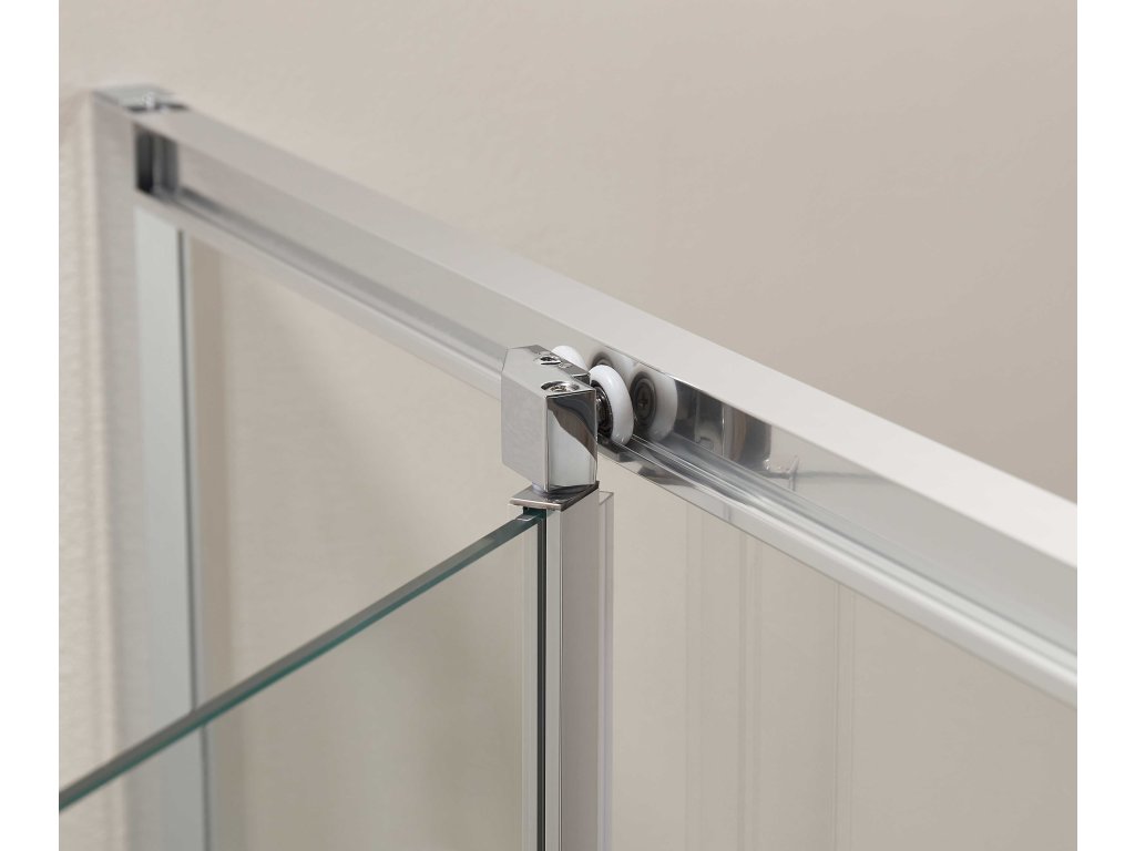 Zasúvacie dvere sa inovatívnym spôsobom zasúvajú dovnútra sprchového kúta, čím vzniká veľký vstupný priestor. Vďaka tomu dvere nezasahujú do priestoru kúpeľne. Ide o veľmi vhodné riešenie aj pre malé kúpeľne.
