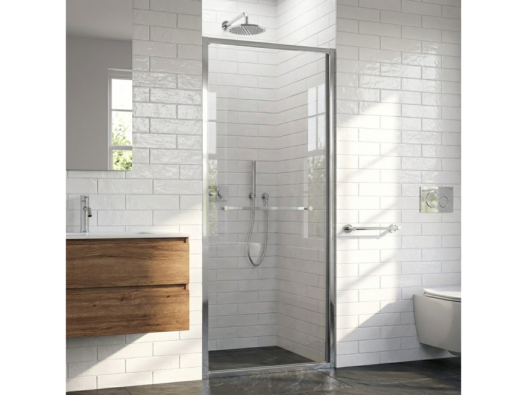Zasúvacie dvere sa inovatívnym spôsobom zasúvajú dovnútra sprchového kúta, čím vzniká veľký vstupný priestor. Vďaka tomu dvere nezasahujú do priestoru kúpeľne. Ide o veľmi vhodné riešenie aj pre malé kúpeľne.