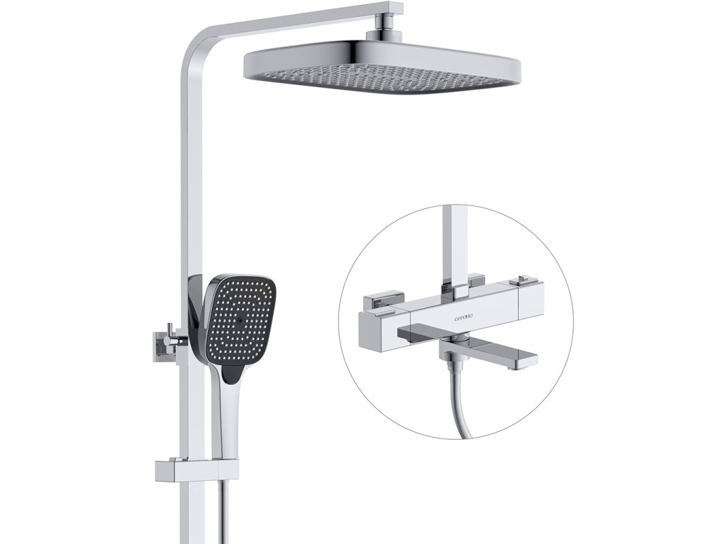 CERANO - Sprchový nástenný stĺp Velar - termostatická vaňová otočná batéria - chróm