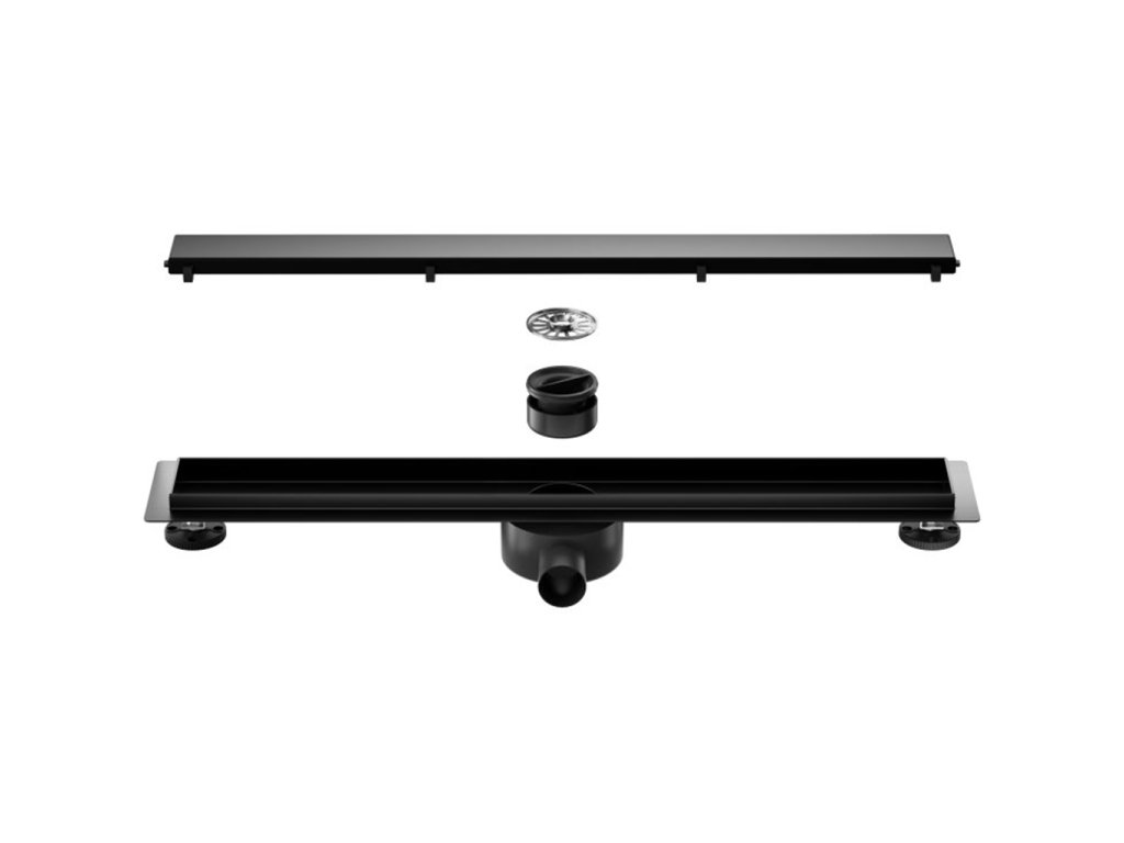 CERANO - Sprchový odtokový žľab, sifón otočný 360 ° - dizajn 2v1 - nerez - DN40 - čierna matná - 104 cm