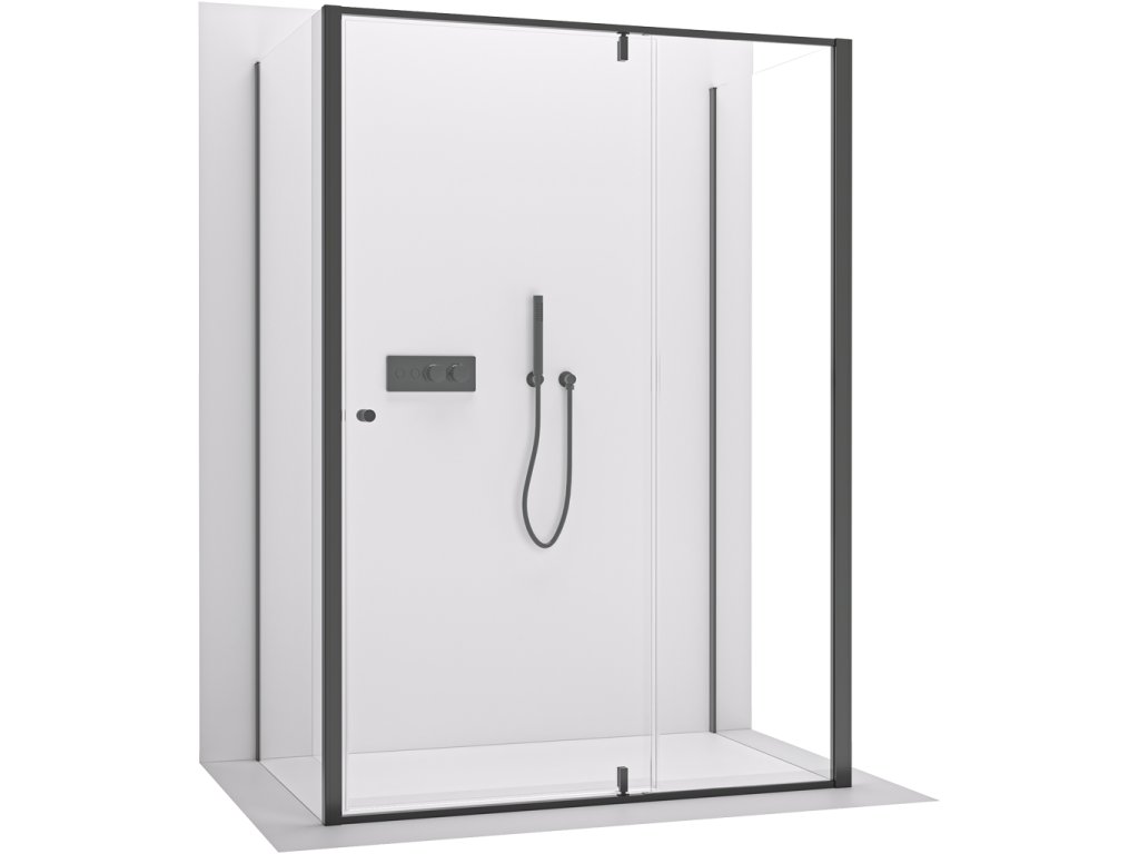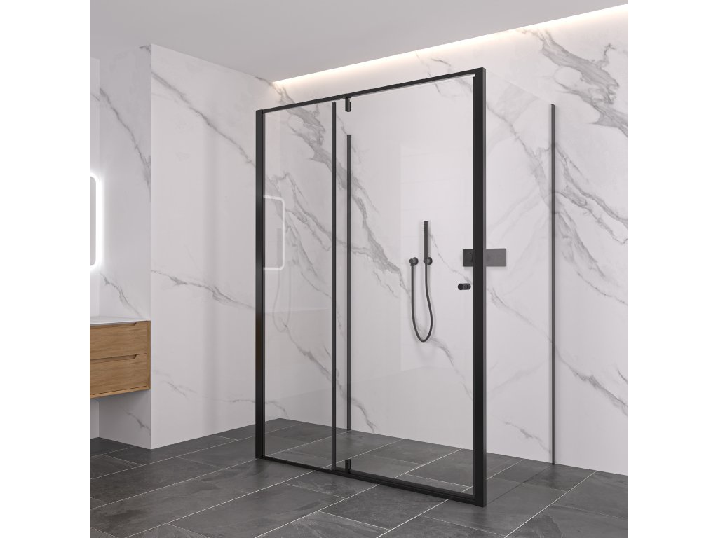 CERANO - Trojstenný sprchovací kút Santini UL/P - 6 mm - čierna matná, transparentné sklo - 120x90x195 cm - pivotový