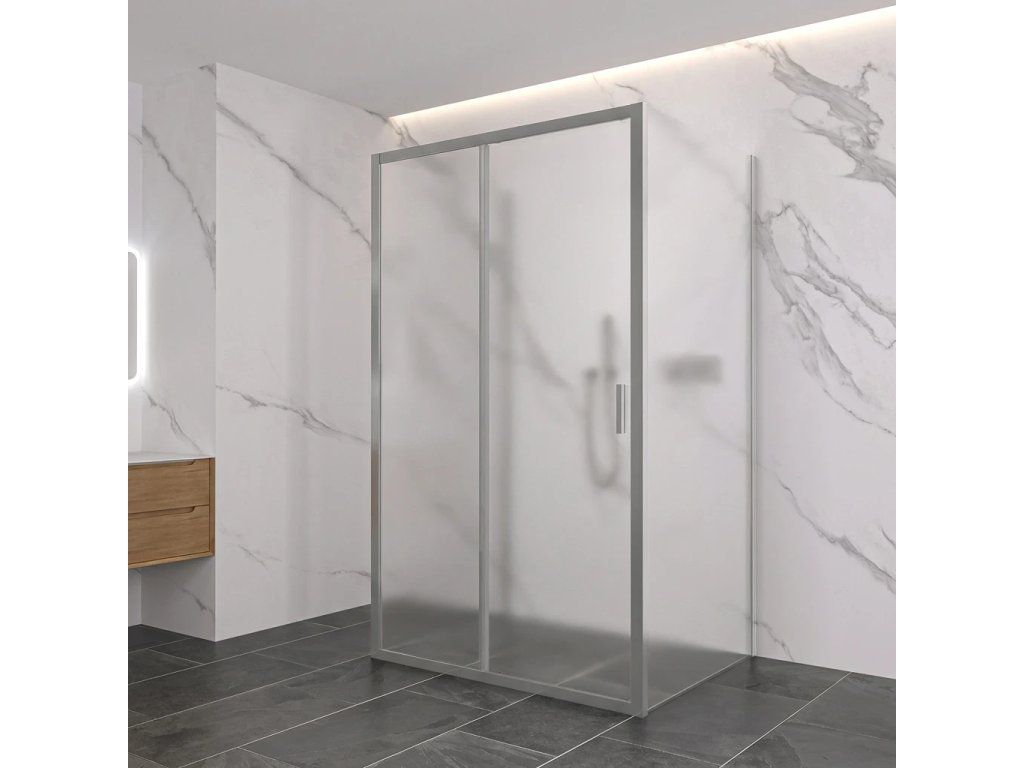 CERANO - Trojstenný sprchovací kút Varone LINE UL/P - 6 mm - chróm, mliečne sklo - 120x100 cm - posuvný
