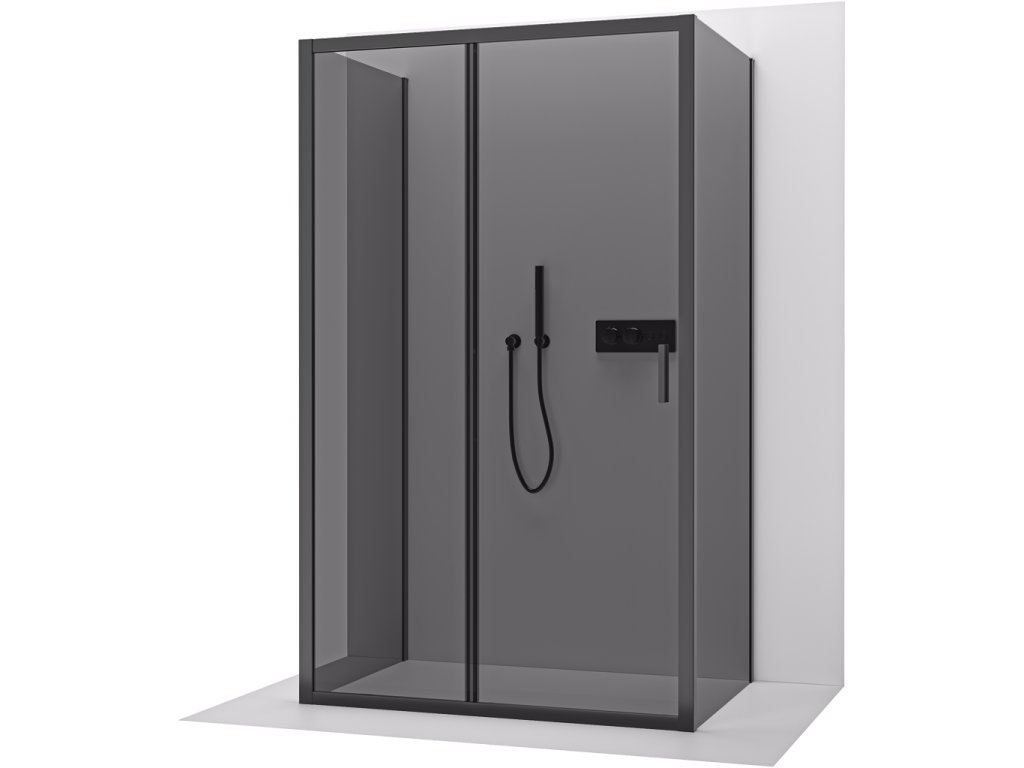 CERANO - Trojstenný sprchovací kút Varone LINE UL/P - 6 mm - čierna matná, grafitové sklo - 110x80x195 cm - posuvný