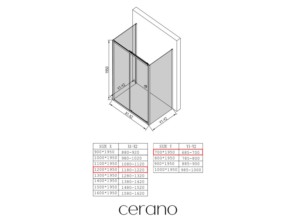 Niektoré zásteny značky CERANO je možné kombinovať s dverami z inej série, ale vo všeobecnosti to neodporúčame.