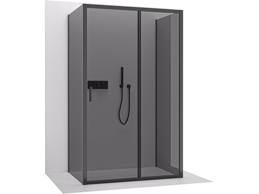 CERANO - Trostenný sprchovací kút Varone LINE UL/P - 6 mm - čierna matná, grafitové sklo - 130x100x195 cm - posuvný